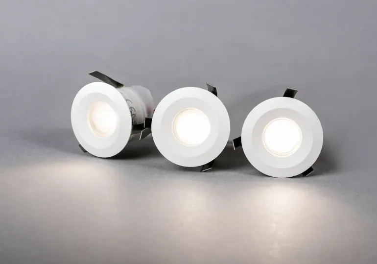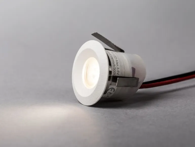 Pieni LED-spottivalaisin sekä sisä- että ulkoasennukseen. Kätevä integroitu pikaliitin, joka helpottaa sarjaankytkentää, poistaa ulkoisten jatkoliitosten tarpeen ja minimoi virhemahdollisuudet. Soveltuu erinomaisesti uppo- tai pinta-asennukseen esim. räystään alapintaan ja kylpyhuoneeseen. Vakiona IP44 alapuolelta ja käytettäessä mukana toimitettavaa silikonitiivistettä IP44 kauttaaltaan. Ohjain tilataan erikseen joko himmennettävänä tai ei-himmennettävänä.
