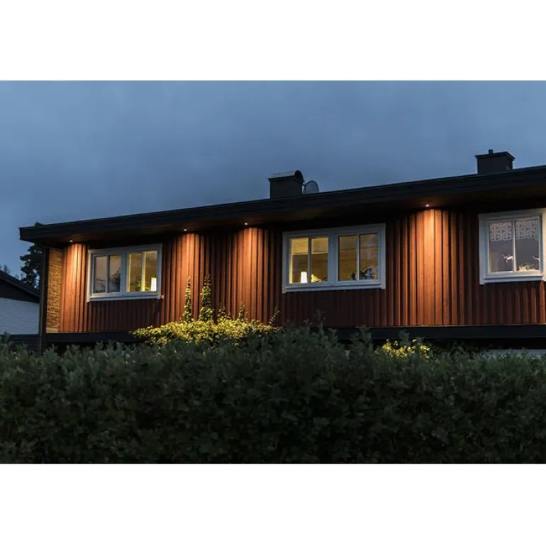 Matalarakenteinen ja suunnattava Comfort-sarjan alasvalo ulkokäyttöön, sisältää esiasennetun himmennettävän GU10-valonlähteen. Erittäin yksinkertainen asennus helppokäyttöisen, 3-napaisella pikaliittimellä varustetun kytkentärasian ansiosta; mahdollistaa ketjutuksen ja asennuksen ilman työkaluja. Vakiona 2 kpl liittimet 16 mm suojaputkelle, joihin putki napsautetaan kiinni. Tarvittaessa helppo vaihtaa holkkitiivisteeseen kaapelille. Helppo valonlähteen vaihto irrotettavan valaisinrenkaan ansiosta. Himmennettävissä monilla markkinoiden tavallisimmista himmentimistä.