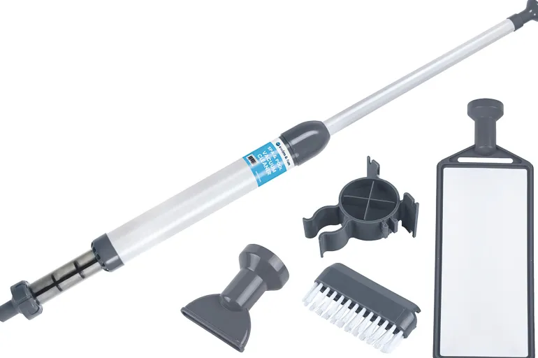 Kevyt työkalu, jolla uima- ja porealtaiden puhdistus käy nopeasti ja helposti. Yksinkertainen pumpputoiminto saa aikaan tyhjiön, joka imee epäpuhtaudet, hiekan ja pikkukivet. Epäpuhtaudet kerääntyvät säiliöön, joka on helppo tyhjentää. Sarja sisältää harjan, pintapuhdistimen, leveän ja kapean imusuuttimen sekä kätevän seinäkiinnittimen.