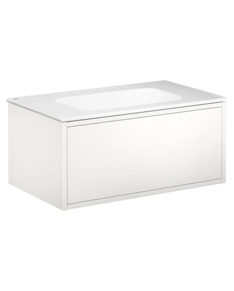 Gustavsbergin Ducentic -pesuallaskaappi keraamisella tai kivisellä allastasolla. Valittavissa myös tukikehyksellä tai ilman sekä yhdellä tai useammalla hanareiällä. Tasossa reikä yhdelle yksireikäiselle hanalle.