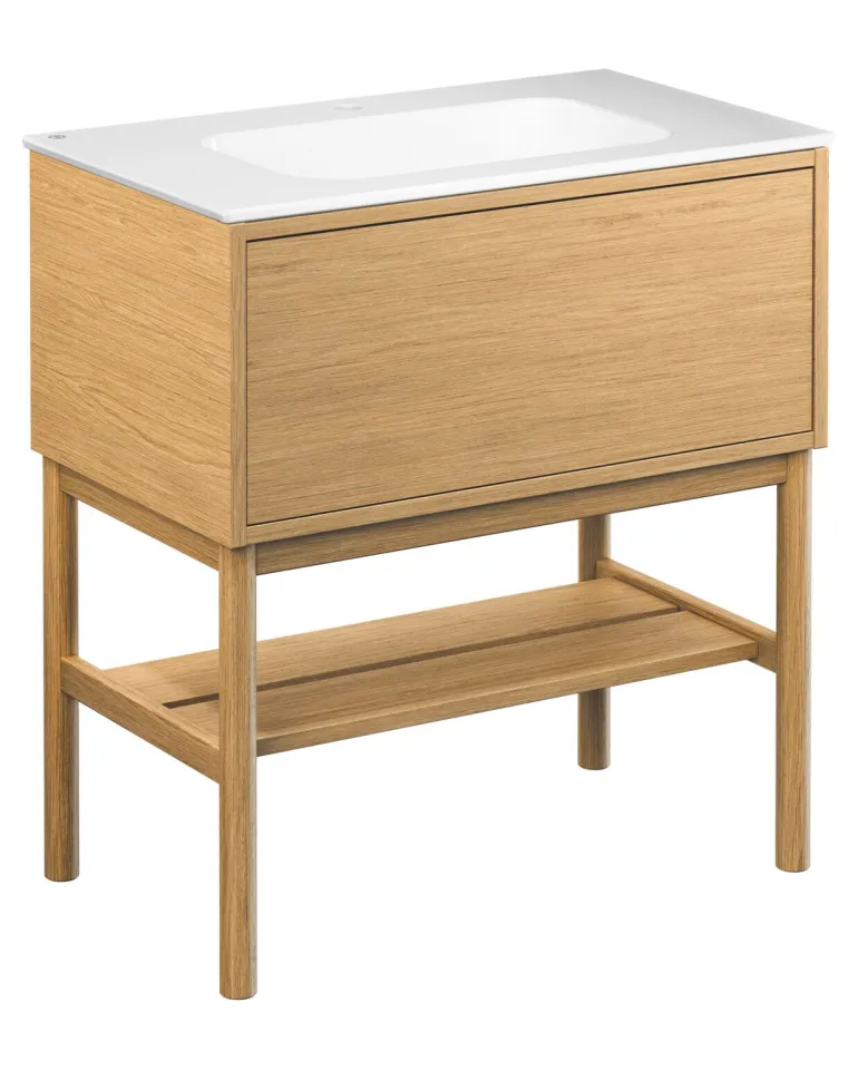 Gustavsbergin Ducentic -pesuallaskaappi keraamisella tai kivisellä allastasolla. Valittavissa myös tukikehyksellä tai ilman sekä yhdellä tai useammalla hanareiällä. Pesualtaassa on kaksi hanareikää (1+1) kahdelle yksireikäiselle hanalle.