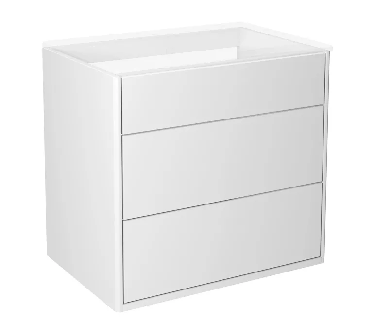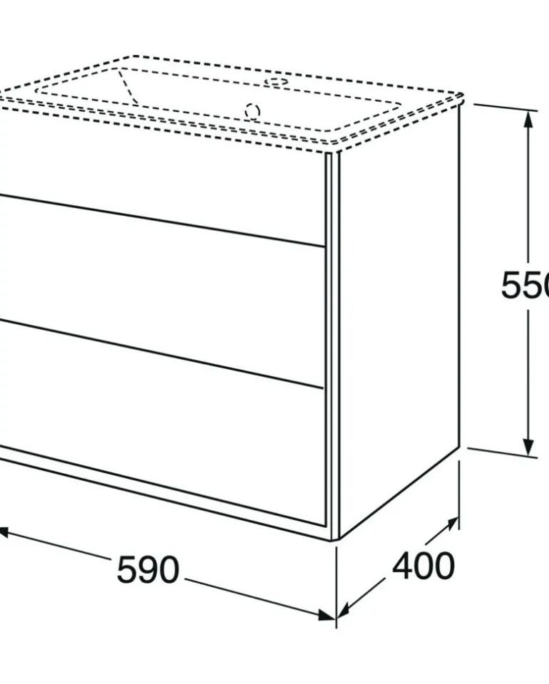 Pesuallaskaappi (leveys 60 cm) kahdella pehmeästi sulkeutuvalla ja kokonaan ulosvedettävällä laatikolla. Avattava säilytyslokero tarjoaa lisää laskutilaa tarpeen mukaan ja sisältää magneettitelineen.