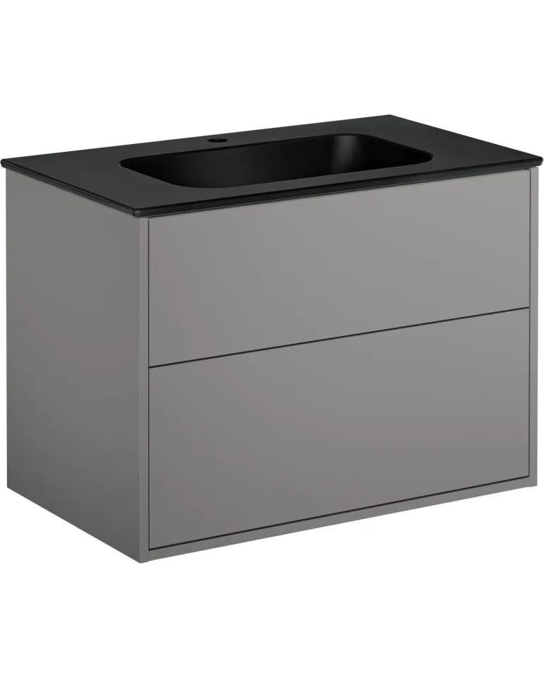 Pesuallaskaappi musta saarni, jossa mattamusta täysin katettu, ohut posliininen pesuallas yhdellä hanareiällä. Asennusjärjestelmä, jonka avulla asennus ja säätö on helppoa ja nopeaa.