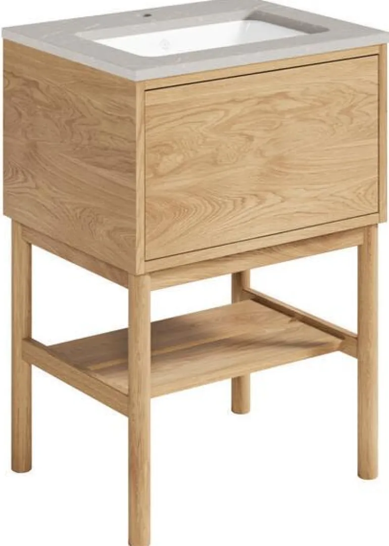 Gustavsbergin Ducentic -pesuallaskaappi keraamisella tai kivisellä allastasolla. Valittavissa myös tukikehyksellä tai ilman sekä yhdellä tai useammalla hanareiällä. Pesualtaassa on kaksi hanareikää (1+1) kahdelle yksireikäiselle hanalle.