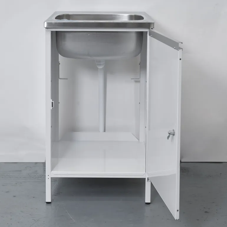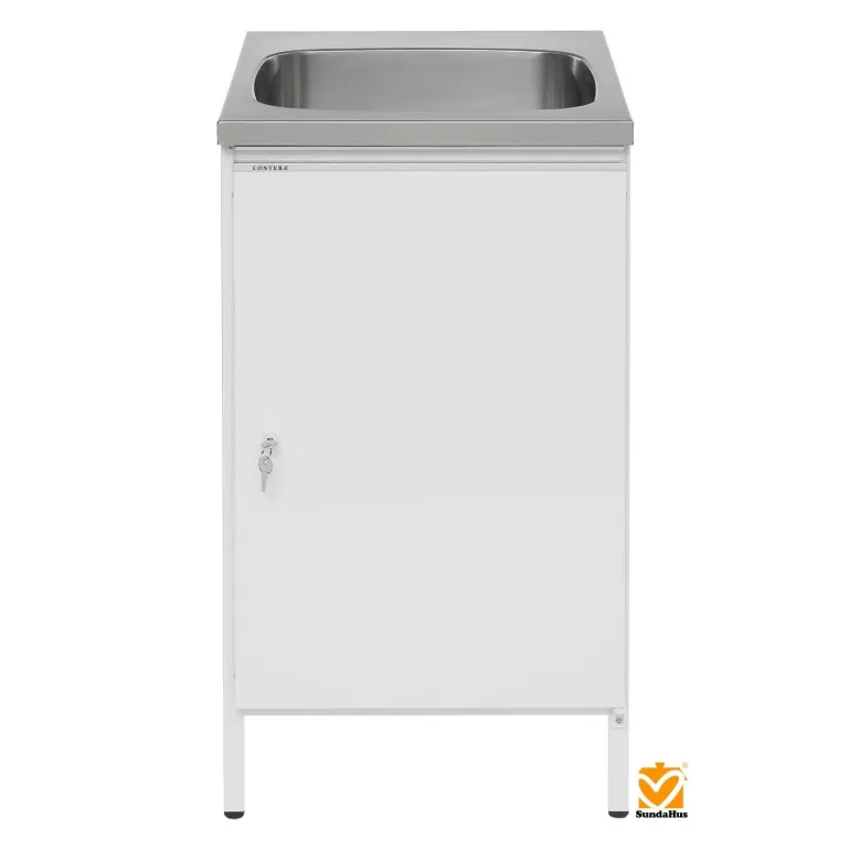 Allaskaappi, jossa ruostumattomasta teräksestä valmistettu pesuallas ja lukittava, lapsiturvallinen säilytyskaappi. Korkeus säädettävissä välillä 900-940 mm. Mukana lisäksi koripohjaventtiili ja poistoputki.