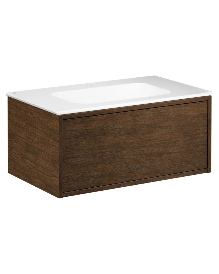 Gustavsbergin Ducentic -pesuallaskaappi keraamisella tai kivisellä allastasolla. Valittavissa myös tukikehyksellä tai ilman sekä yhdellä tai useammalla hanareiällä. Pesualtaassa on kaksi hanareikää (1+1) kahdelle yksireikäiselle hanalle.