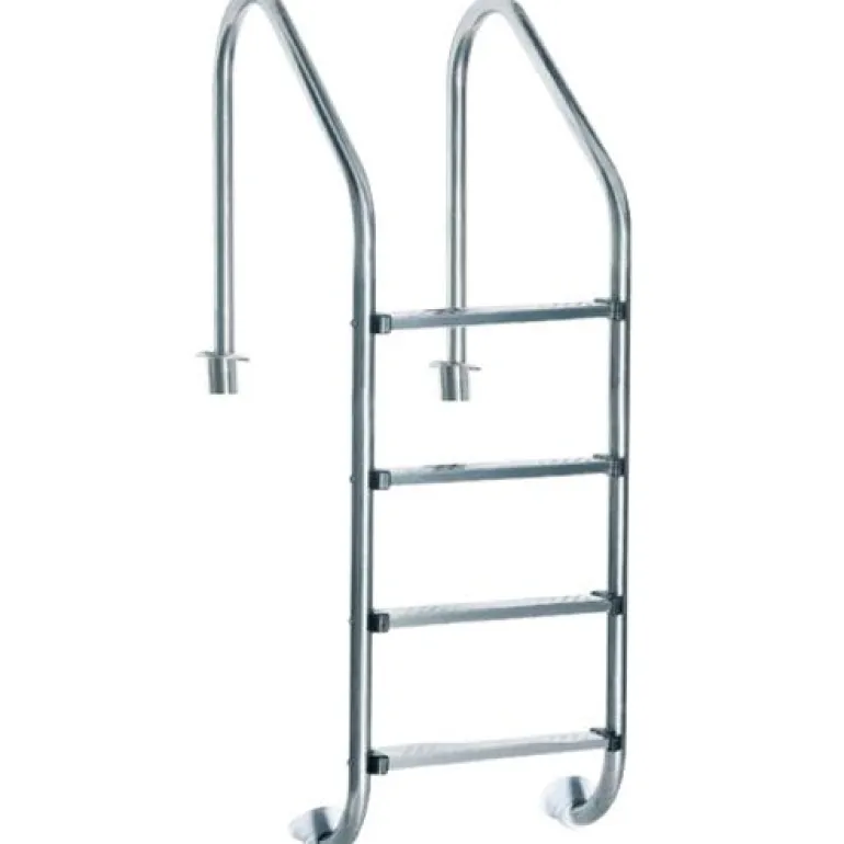 Ruostumattomasta teräksestä valmistetut inground-tikkaat, joissa on neljä askelmaa, maahan upotettuihin tai integroituihin altaisiin. Liukumaton turvapinnoite.