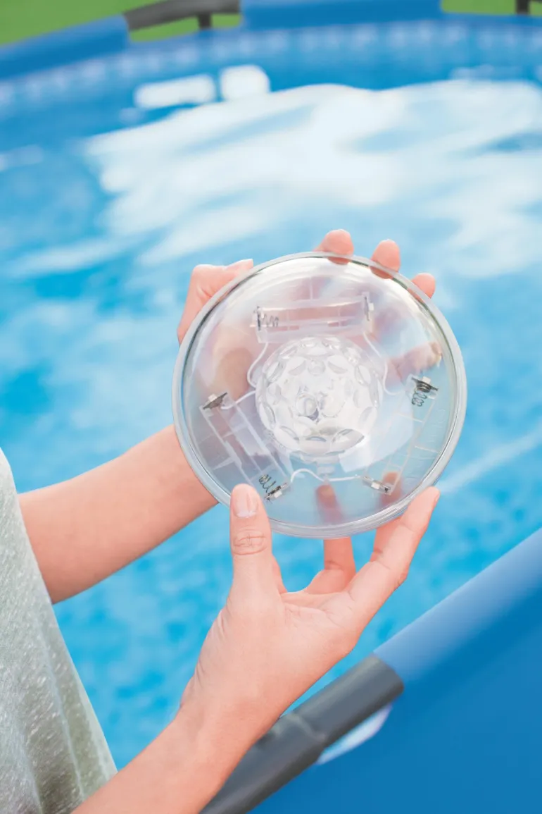 Planet Pool Flowclear on allaslamppu, joka kelluu veden pinnalla. Neljä erittäin kirkasta LED-lamppua, jotka palavat kauniisti keltaisen, punaisen, sinisen ja vihreän väreissä sekä seitsemänä vilkkuvana lamppuna. Flowclear-allasvalaisin saa virtansa kolmesta AA-paristosta (eivät sisälly toimitukseen), on vedenpitävä ja helppokäyttöinen, paina lampun yläosassa olevaa painiketta.