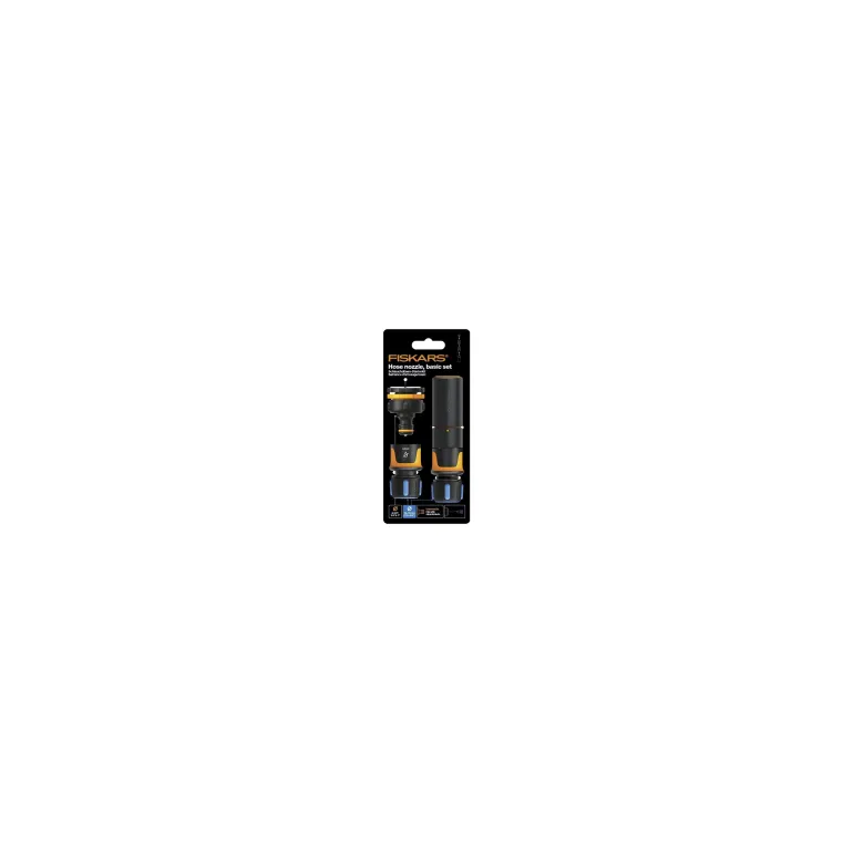 Aloituspakkaus, jossa on Multi-hanaliitäntä, letkuliittimet ja suihkusuutin.