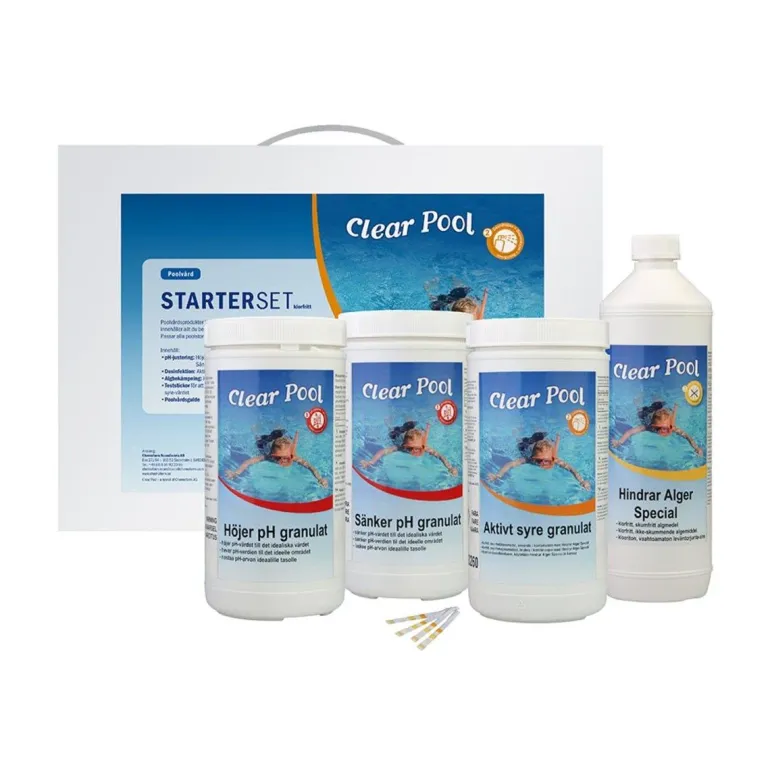 Planet Pool Aloituspakkaus Aktiivinen happi (klooriton) on täydellinen pakkaus, joka sisältää kaikki uuden uima-altaan käyttöönottoa varten tarvittavat kemikaalit, kun halutaan klooriton vaihtoehto. Pakkauksen sisältö: 1 kg Aktiivinen happi, 1 litra Levänesto Special -leväntorjunta-aine, 1 kg pH Plus, 1,5 kg pH Minus, 50 testiliuskaa ja hoito-ohje.