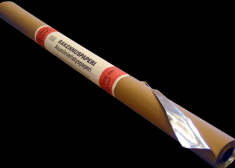 Harvia alumiinipaperi on kestävä, saunarakentamiseen tarkoitettu materiaali, joka toimii ilman- ja höyryn sulkuna. Alumiinipaperi kestää korkeita lämpötiloja, suojaa seinän eristyksiä kosteudelta ja tarjoaa hyvän ilmanvaihdon.