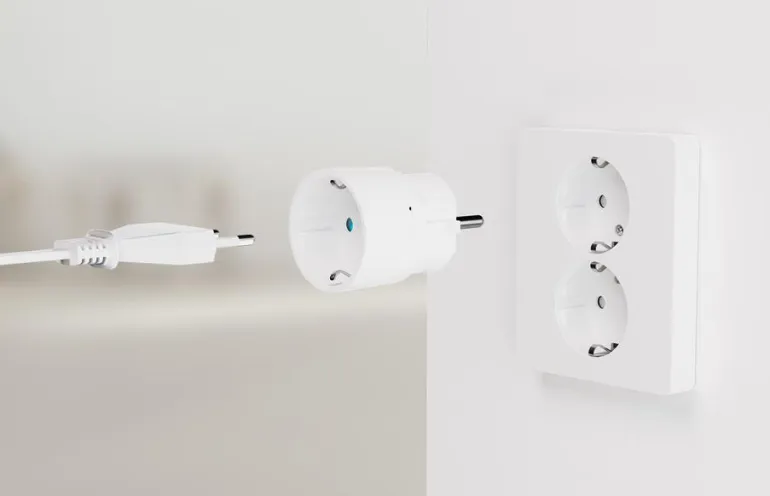 Älypistoke On/Off sijoitetaan pistorasiaan valaistuksen ja muiden laitteiden kytkemiseksi päälle ja pois päältä. Smart plug voidaan ohjata langattomasti muiden tuotteiden kautta Plejd-verkossa tai suoraan sovelluksen kautta Bluetoothin kautta.