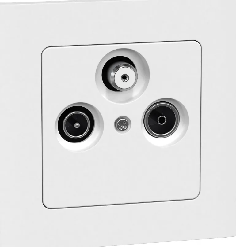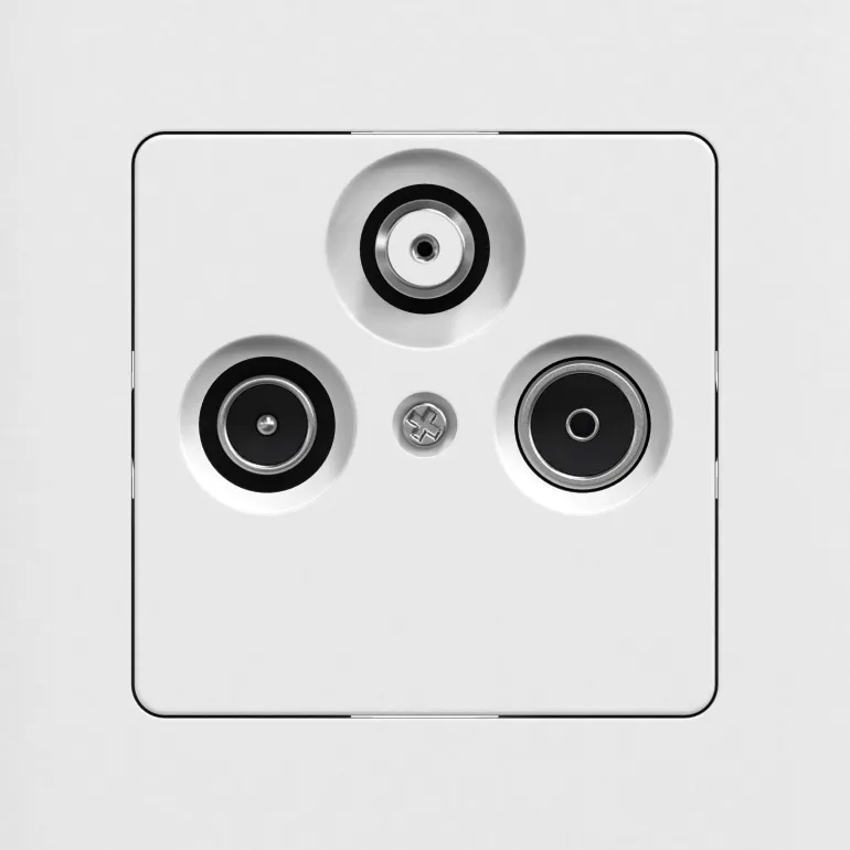 Täydellinen radio-/TV- ja satelliittipistorasia sekä liittimet ja päätevastus. Pistorasia on yksinomaan pääterasia, eikä sitä voi kytkeä sarjaan. Sisältää kiinnityskynnet, joita käytetään asennettaessa yksikkö vanhempiin kokoonpanoihin, sekä kynsisarjan ruuveilla.