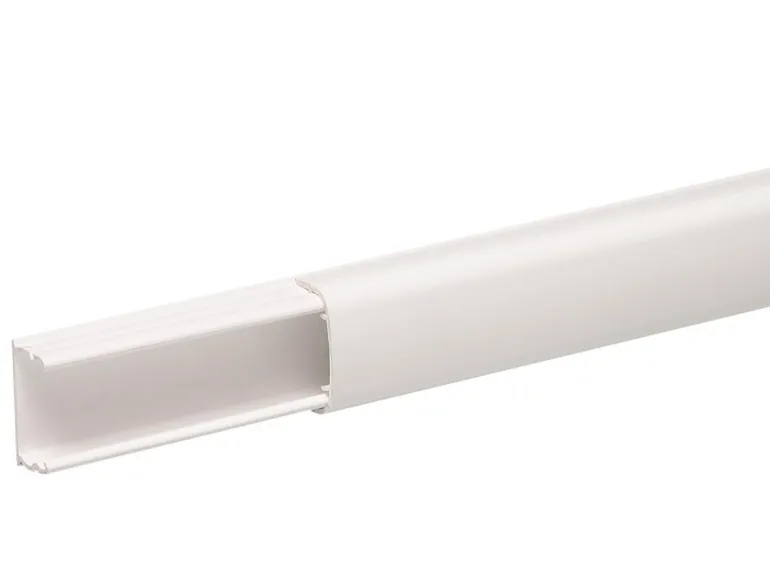 OptiLine-minikanava vahva- ja heikkovirtajohdoille, rei’itetty pohja. Muovinen versio hyväksytty yksinkertaisesti eristetylle kaapelille.