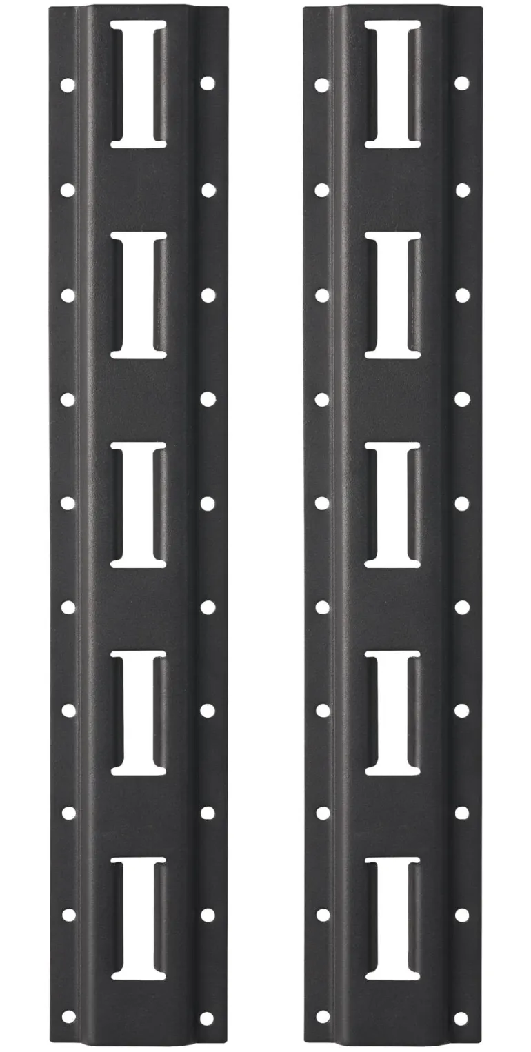 E-Track asennuskiskot voidaan kiinnittää ajoneuvojen, liikkeiden ja autotallien seinään helposti. Pikalukitus helpottaa asennusta, korkeuden säätämistä ja hyllyjen poistamista. Jokainen hylly kestää jopa 22 kg painon. Metallivahvisteiset kulmat. Valmistettu iskunkestävästä polymeerista. Osa PACKOUT säilytysjärjestelmää.