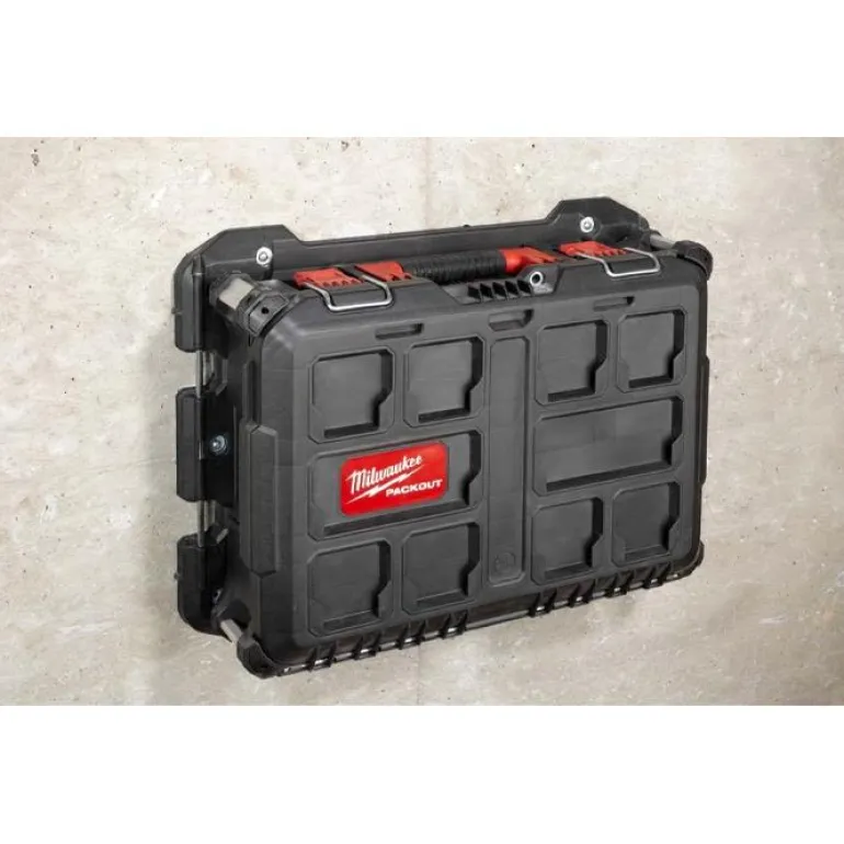 Milwaukee 4932471638 Packout on seinään tai lattiaan asennettava kiinnityslevy. Levyn painokapasiteetti on 45 kg lattiaan asennettuna ja 22 kg seinään asennettuna. 550 x 390 mm (P x L).