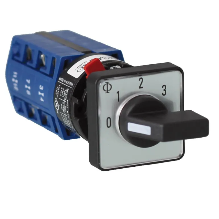 Askelmasäädin 0-1-2-3, 2-napainen 10A 1-reikäinen paneeliasennus (etuosan koko 30×30 mm).