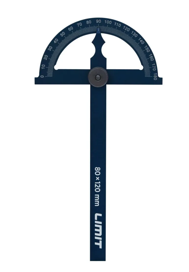Mattakromattu alumiininen astelevy. Levyssä on asteikko 0–180°. Lukkoruuvi levyn kiinnittämiseksi mihin tahansa kulmaan.