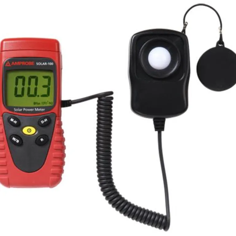 Beha-Amprobe SOLAR-100 on aurinkoenergiamittari, jolla mitataan läpinäkyvyyttä ja auringon säteilyä ikkunoissa ja ruuduissa. Voidaan käyttää myös aurinkoenergian mittaamiseen aurinkopaneelien tai vastaavien optimaalista sijoittamista varten.