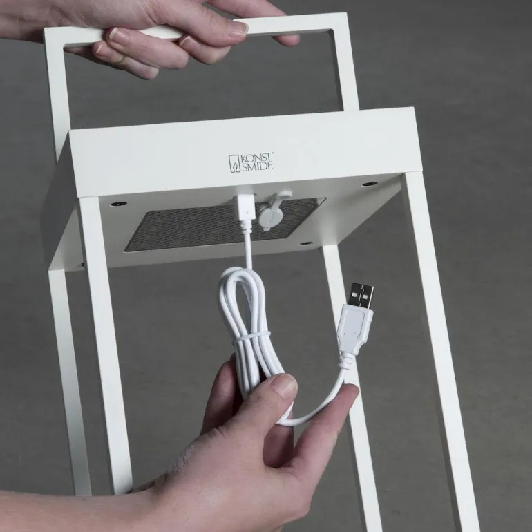 Konstsmide USB Touch 7815-250 Portofino on valkoinen alumiininen aurinkokennolyhtyvalaisin ulkokäyttöön. Latautuu aurinkokennoilla, voidaan ladata myös USB:llä. Valaisimen muotoilu on minimalistinen ja tyylikäs. Moderni valaisin, joka voidaan asentaa seinälle tai käyttää vapaasti seisovana. Valaisimessa on sisäänrakennettu himmennin, jossa on virta- ja hämäräkytkin. Värilämpötila on 2 700 K / 3 000 K.