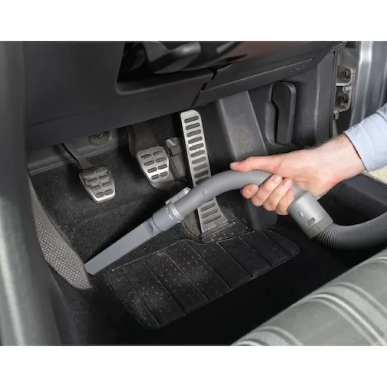 12 V-autopölynimuri 5 metrin pituisella letkulla, joka mahdollistaa pääsyn kaikkialle autoon. Pölynimuria voidaan käyttää perinteisenä käsipölynimurina tai kahva voidaan poistaa käytettäväksi ahtaissa tiloissa.