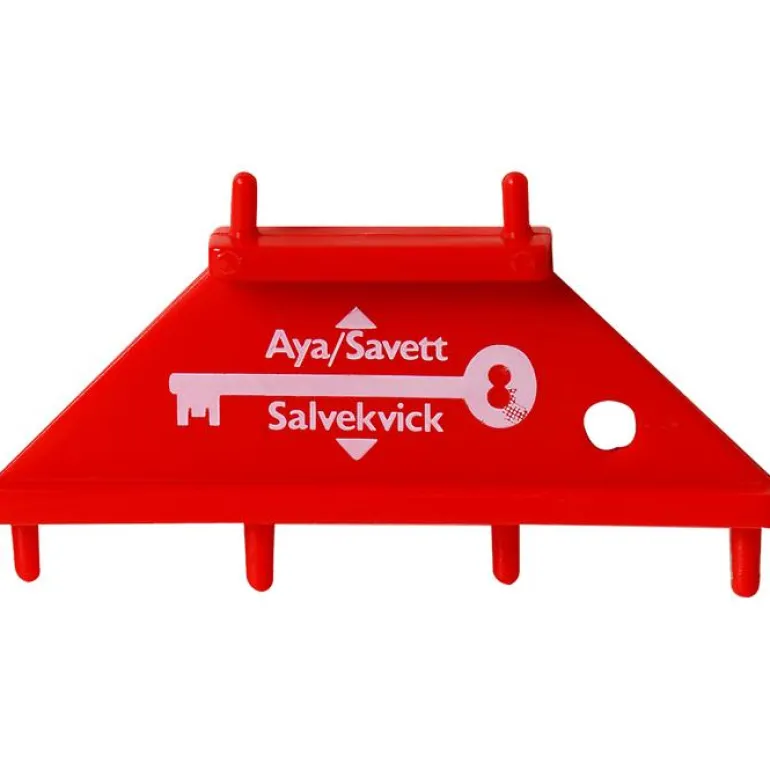 Erikoisavain tyhjän täyttöpakkauksen poistamiseen Salvequick-laastariautomaatista ja Savett-haavapyyheautomaatista.