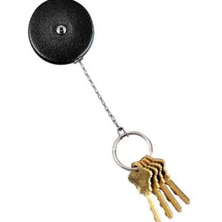 Avaimenpidike, jossa vyöklipsi ja 60 cm pitkä teräsketju. Kotelo on valmistettu teräksestä ja kestää kovassaki työympäristössä. Paluumekanismi mahdollistaa nopean palautuksen vahvan jousen ansiosta.