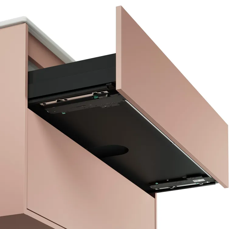 Teräksinen avausmekanismi alalaatikoston laatikoiden kahvattomaan avaamiseen. Sen avulla yhden laatikon voi avata push-open-toiminnolla, laatikko aukeaa painamalla sen etuosaa.