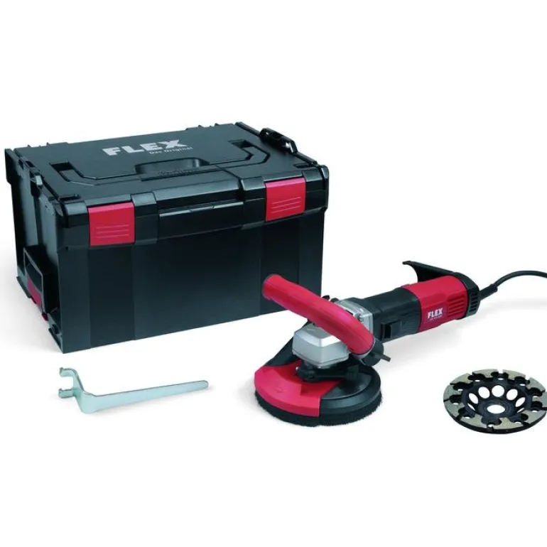 Flex LD16-8 125R on 1600 W:n betonihiomakone, jossa on mikroprosessoriohjaus pehmeällä käynnistyksellä, uudelleenkäynnistyssuoja sähkökatkoksen sattuessa, lämpötilan valvonta, ylikuormitussuoja ja elektroninen nopeudensäätö. Varustettu tehokkaalla pölynpoistolla, joka suojaa aggressiiviselta pölyltä ja pitää betonin urat auki, mikä vähentää jauhatusastian kulutusta. Automaattinen Anti-Kickback -pysäytys pysäyttää työkalun moottorin jos laikka jää jumiin. Laikansuoja varustettuna sivuun siirrettävällä ja joustavalla reunasegmentillä, mahdollistaa myös aivan seinän reunan hiomisen. Työskentely on tehokasta ja taloudellista, hiomalaikan optimaalisen ohjattavuuden ansiosta.