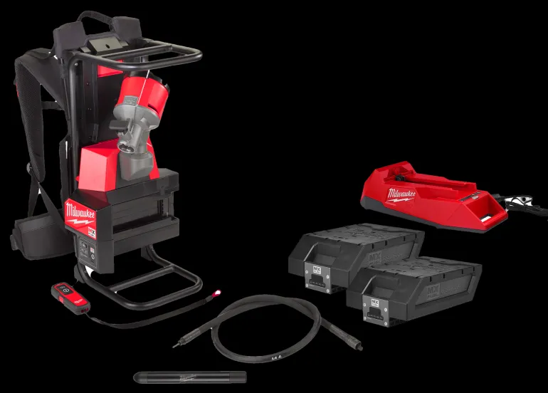 Toimitukseen sisältyy: 2 x MXF 6.0 Ah REDLITHIUM-akkuja, laturi, 2 m täryvarsi, 38 mm vibrapää ja kauko-ohjain.