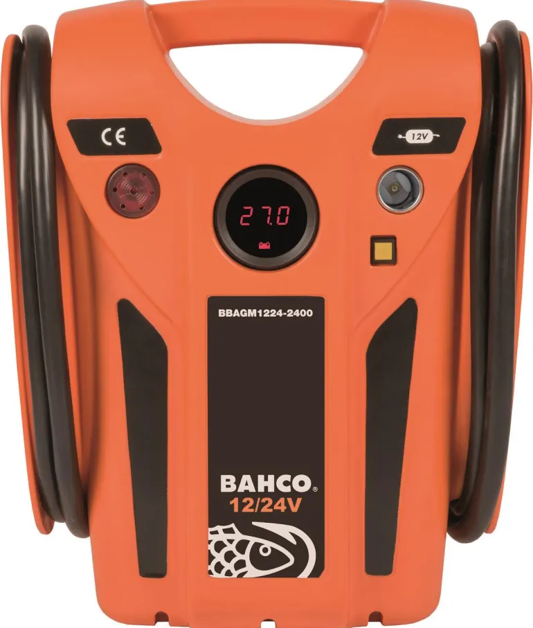 Bahco BBAGM1224-2400 on tehokas 12/24 V AGM-boosteri, jonka käynnistysampeerit 2400/1200 12/24 V:lla. Liitin, jolla valitaan joko 12 V tai 24 V jännite. Kuparikaapelin poikkipinta-ala on 50 mm², mikä varmistaa erittäin hyvän johtavuuden.