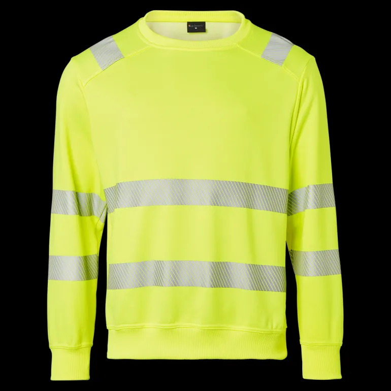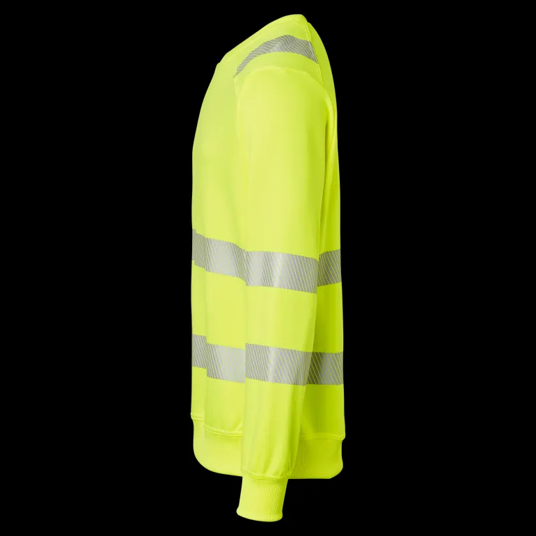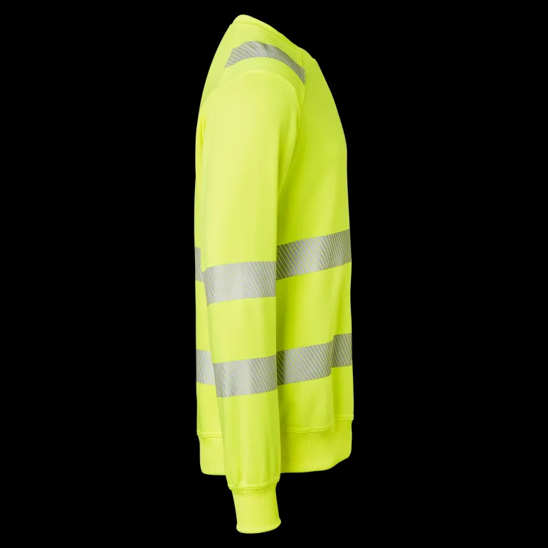Huomiovärillinen collegepaita, jossa heijastinnauhat stretch-materiaalia. Resorit helmassa ja hihansuissa. EN ISO 20471 luokka 2 XS-M, luokka 3 L-3XL. Pesuohjeet: Konepesu 60 °C.