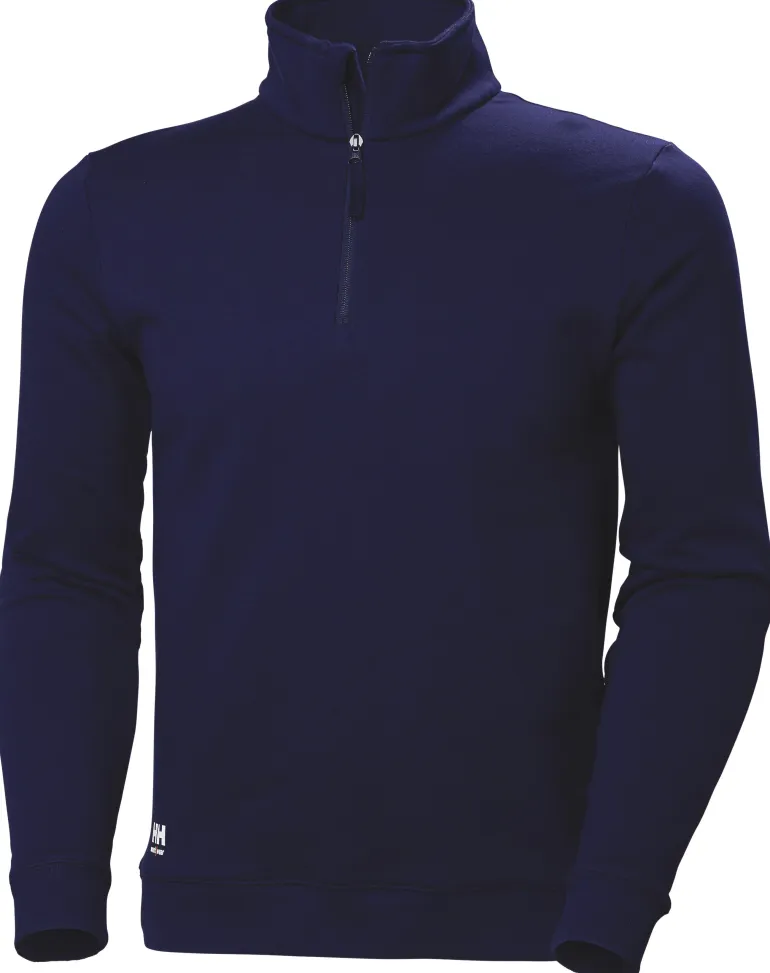 Manchester-collegepaita, jossa puolipitkä vetoketju ja joustavat hihansuut ja helma. Osa Helly Hansen Workwearin perusmallistoa, jossa on keskitytty hyvään istuvuuteen ja laadukkaisiin kankaisiin.