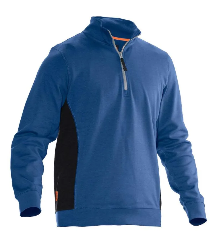 Jobman 5401 on collegepaita kaksipuolisesta doubleface-materiaalista. Paidassa on korkea vetoketjullinen kaulus, resorit helmassa ja hihansuissa sekä kontrastiraita sivulla.