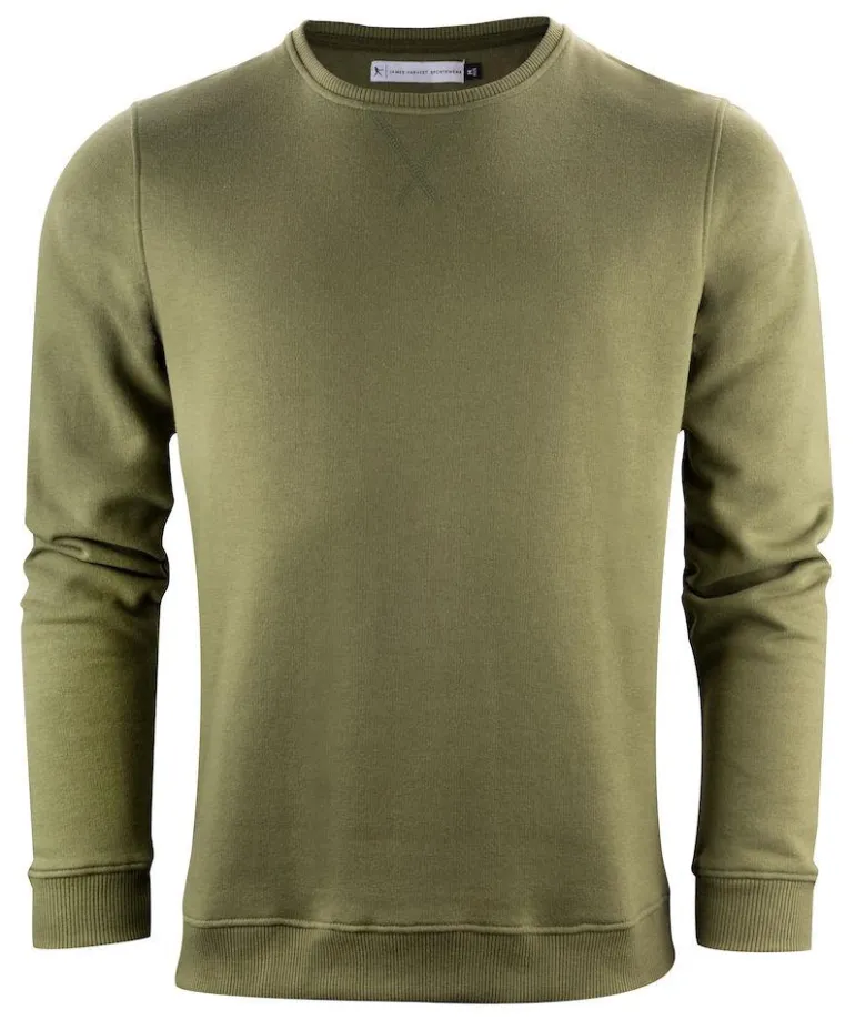 James Harvest Alder Heights on luomupuuvillasta valmistettu collegepaita pyöreällä kaula-aukolla ja harjatulla sisäpuolella.