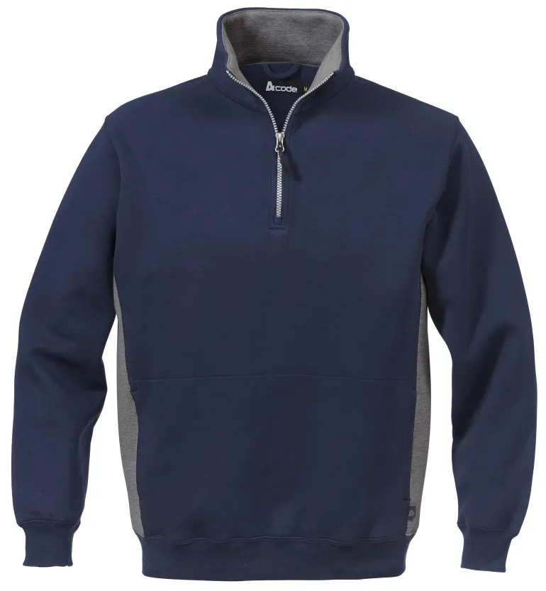 Collegepaita ylellisestä Doubleface-materiaalista – sisäpuoli on samanlainen kuin ulkopuoli. Paidan kauluksessa ja sivuilla on kontrastiväri, lyhyt vetoketju, kengurutasku sekä resorit hihansuissa ja helmassa.