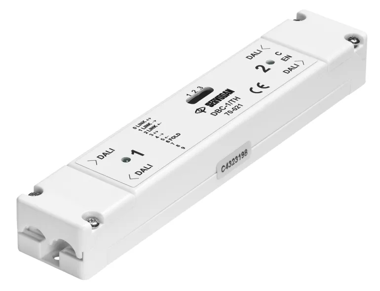 DALI-moduulin 70-021 avulla voit kytkeä useita DALI-väyliä yhteen, eli voit helposti luoda taittoseinäratkaisuja, naapurivyöhykkeiden ohjauksen sekä lisätä DALI-laitteiden määrää yli 64 osoitteeseen ja luoda laajoja järjestelmiä. Moduuli on suunniteltu siten, että asennus voidaan integroida nopeasti ja helposti eikä 230 V:n virtalähdettä tarvita.