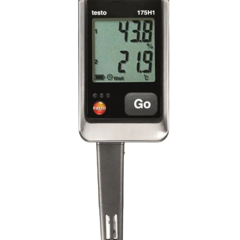 Kestävä ja kestävä tiedonkeruulaite lämpötilaa ja kosteutta varten. Testo-anturi takaa erinomaisen suorituskyvyn tarkkuuden, pitkän aikavälin vakauden ja hystereesin osalta. Testo 175 H1 -mallissa on muistia miljoonalle mittausarvolle sekä suuri näyttö, joka näyttää nykyiset mittausarvot, min/max, hälytykset ja lokitilan sekä sen, onko asetetut hälytysrajat ylitetty ja kuinka pitkän ajan.