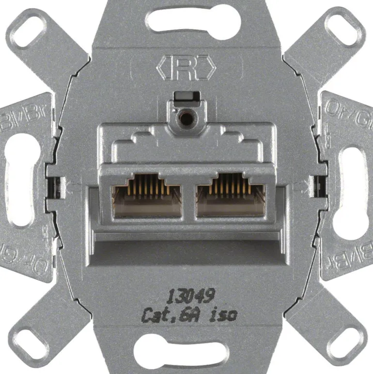 Datapistoke 2×8-napainen, suojattu, 72V=, 0,5A, asennussyvyys 31mm, liittimille RJ11, RJ12 ja RJ45