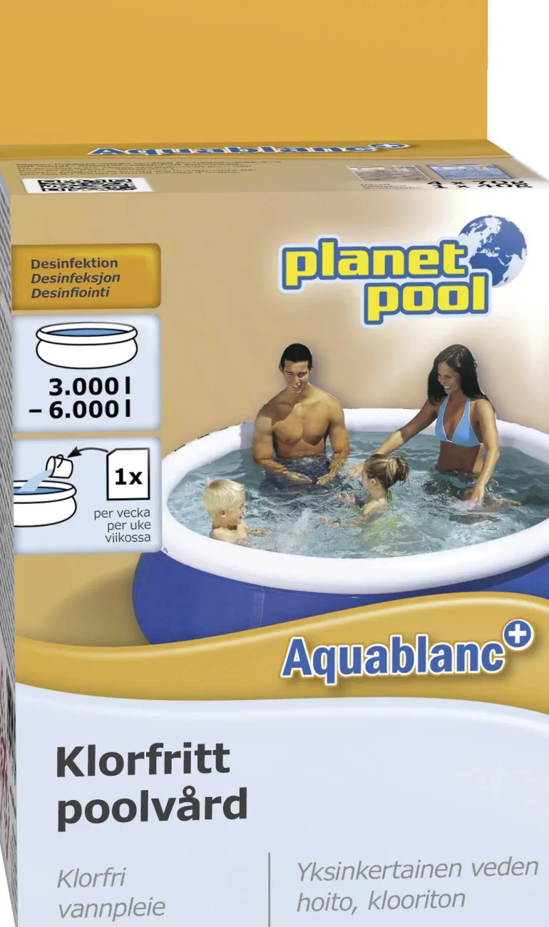 Desinfiointiaineen sisältävä aloituspakkaus 3 000–6 000 litran altaille. Yksi annos desinfioi ja estää levien muodostumista 4 viikon ajan.