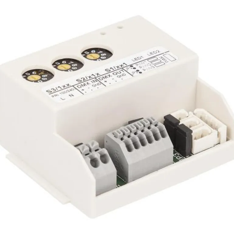 DMX-liitäntä, jossa DMX-signaalit muunnetaan 3-kanavaisiksi PWM-signaaleiksi. Laite kytkeytyy 230 V: n jännitteeseen ja voidaan kytkeä himmennysmuuntimiin, kuten VSTR ja Jolly.
