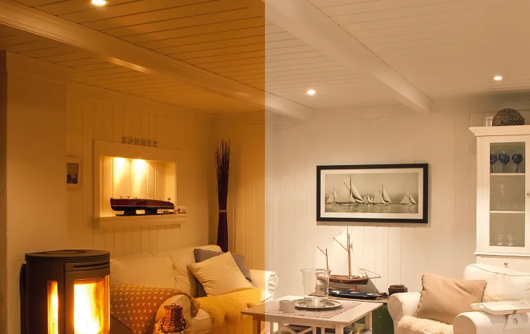 Alasvalo A++, 6 W, mattavalkoinen. Värilämpötilaa voi säätää himmennyksen yhteydessä DimToWarm-toiminnolla 2000–2800 K. Sopii sisäkäyttöön, suojausluokka IP44.