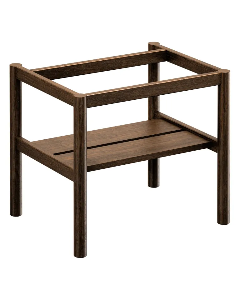 Vaaleasta massiivitammesta valmistettu tukikehys säilytystasolla Gustavsberg Ducentic-allaskaapille. Leveys 120 cm. Luotu Gustavsbergin 200-vuotisjuhlavuotta varten, käsityötaidon ja muotoilun perinteen juhlistamiseksi. Saatavana eri väreissä.