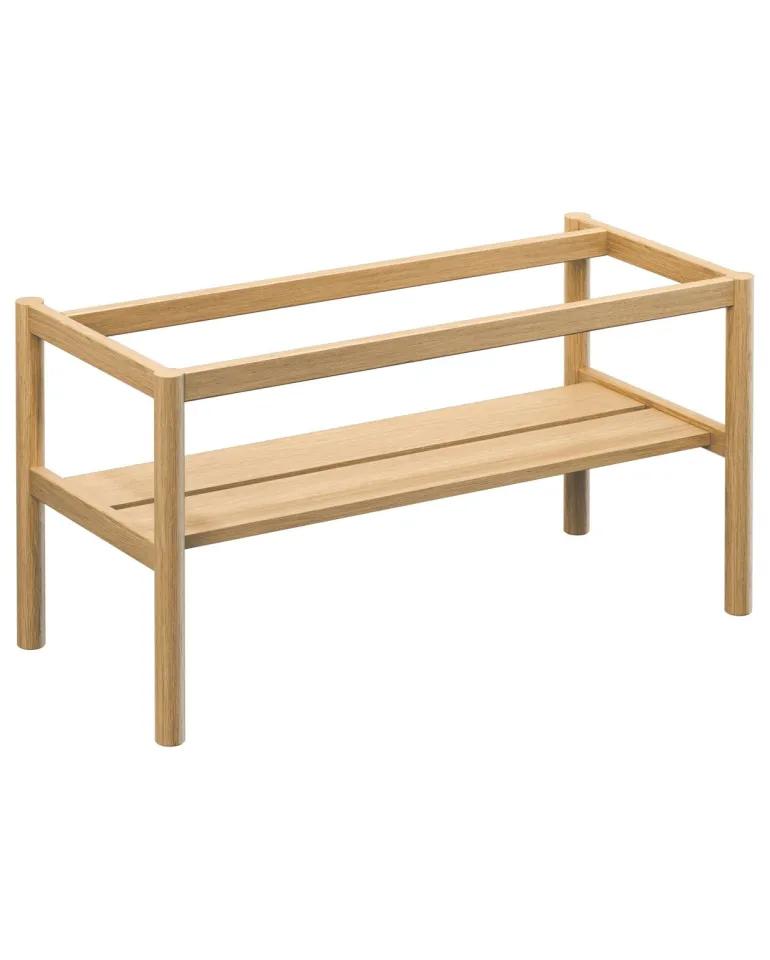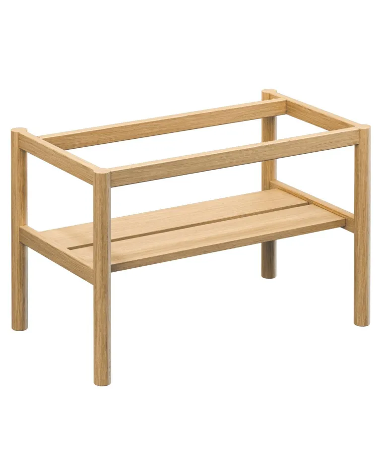 Vaaleasta massiivitammesta valmistettu tukikehys säilytystasolla Gustavsberg Ducentic-allaskaapille. Leveys 80 cm. Luotu Gustavsbergin 200-vuotisjuhlavuotta varten, käsityötaidon ja muotoilun perinteen juhlistamiseksi. Saatavana eri väreissä.