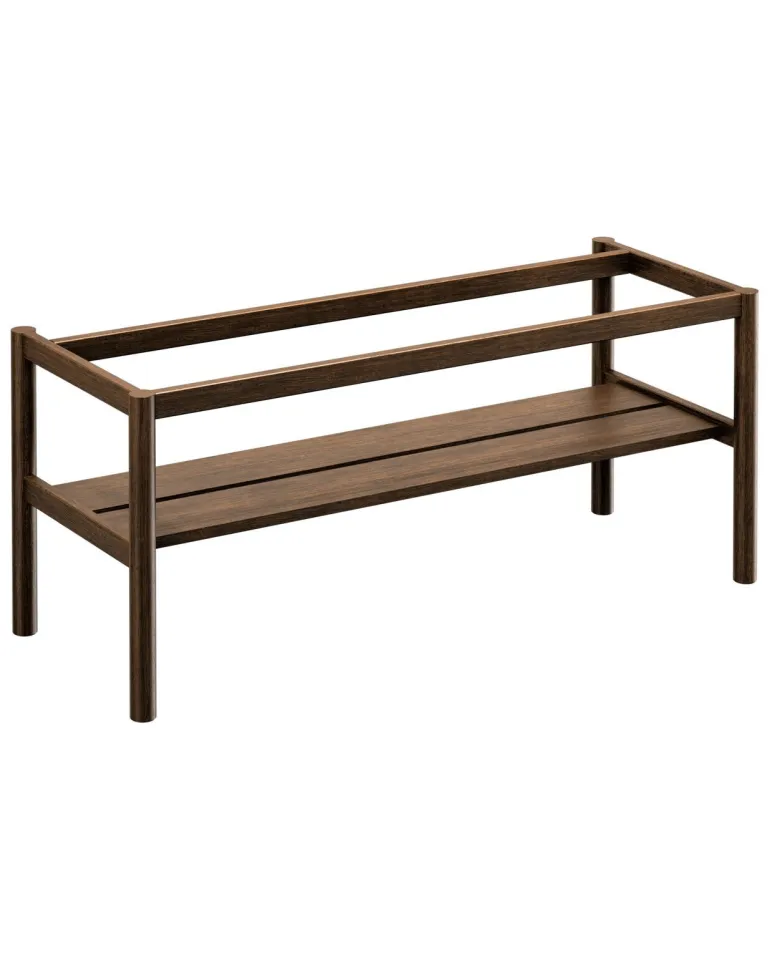 Ruskeasta massiivitammesta valmistettu tukikehys säilytystasolla Gustavsberg Ducentic-allaskaapille. Leveys 120 cm. Luotu Gustavsbergin 200-vuotisjuhlavuotta varten, käsityötaidon ja muotoilun perinteen juhlistamiseksi. Saatavana eri väreissä.
