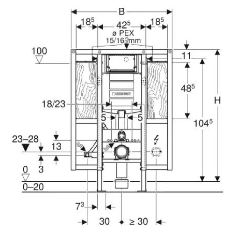 Asennettavaksi osakorkeisiin tai huonekorkeisiin Geberit Duofix