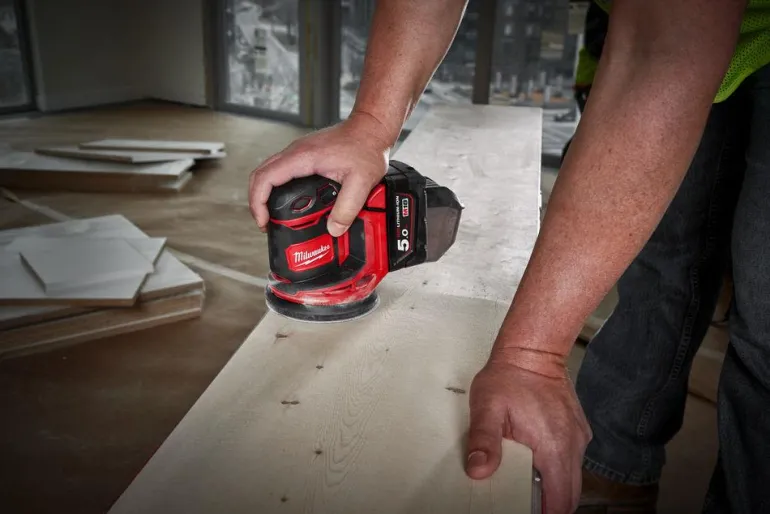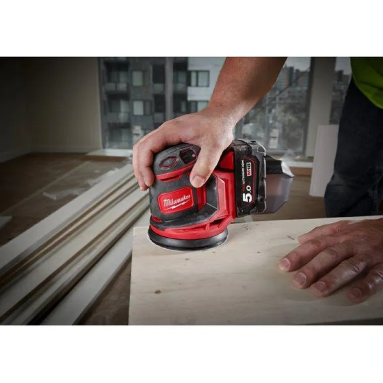 Milwaukee M18 BOS125-0 18 V epäkeskohiomakone tuottaa 14 000– 20 000 hiontaa minuutissa. Hiomakoneessa on 125 mm hiontalevy ja imuadapteri.