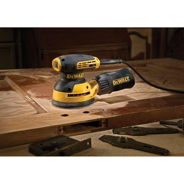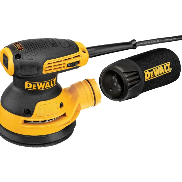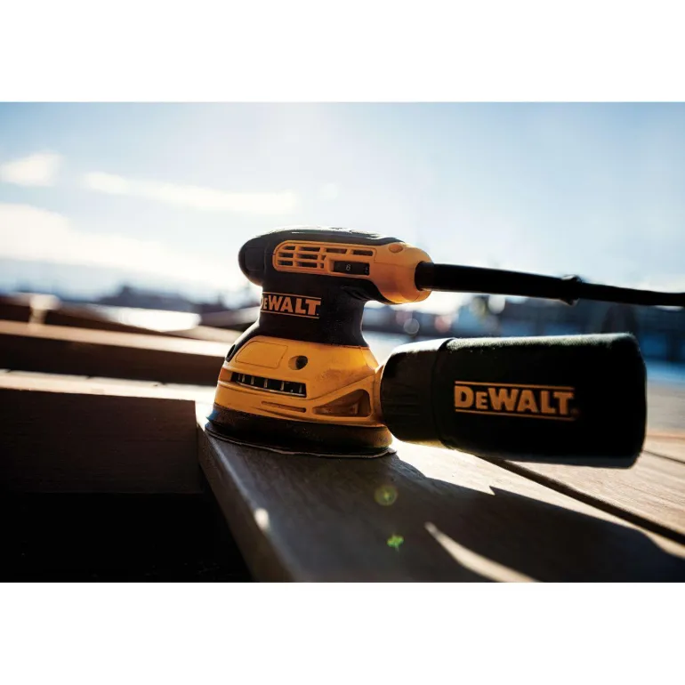 DEWALT DWE6423 on 280W:n epäkeskohiomakone, jonka laikan halkaisija on 125mm. Pölytöntä työskentelyä pölypussin ansiosta.