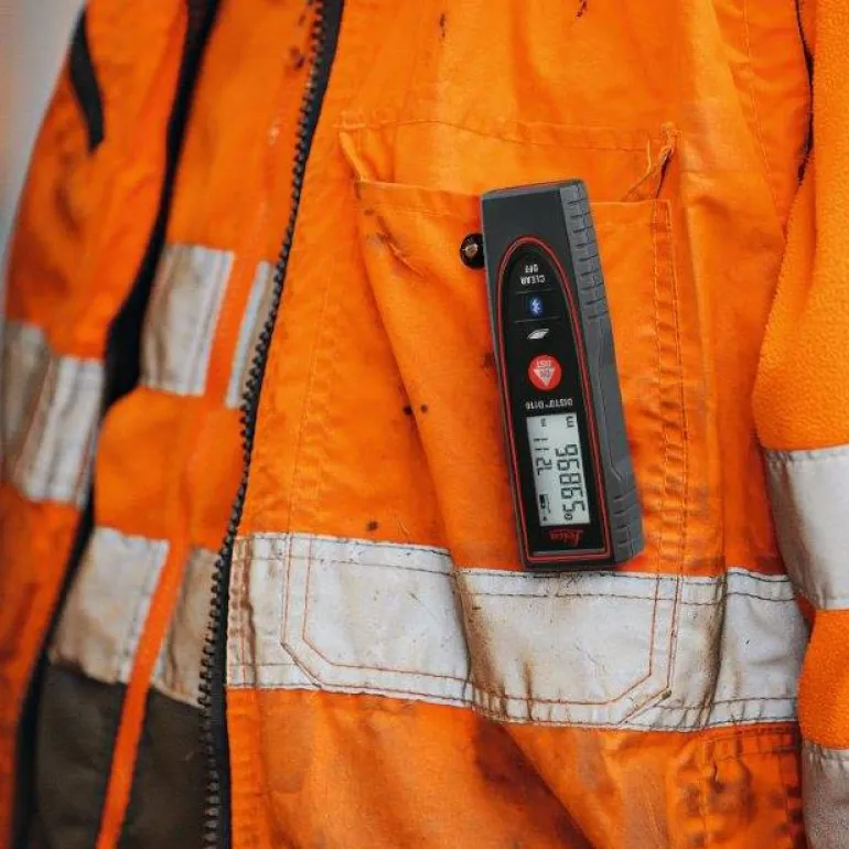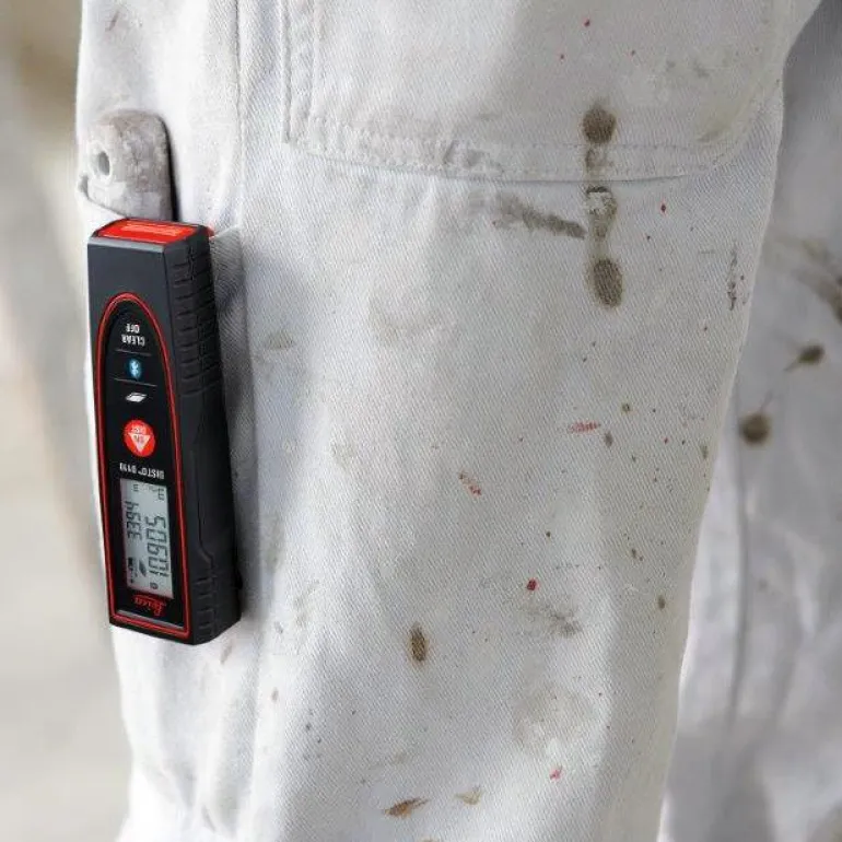 Bluetoothilla varustetusta etäisyysmittarista voit siirtää mittausarvot langattomasti suoraan tabletille tai älypuhelimeen.