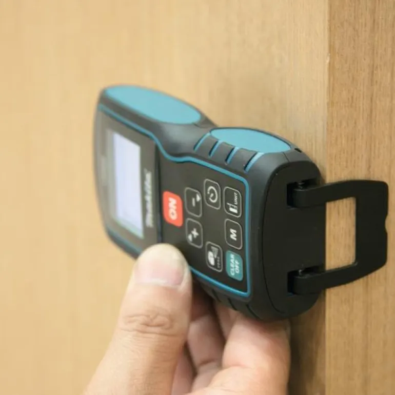 Makita LD080PI on jopa 80 metrin etäisyyksien mittaamiseen tarkoitettu etäisyysmittari. Vaikeapääsyisten paikkojen ja reunojen tarkkaan mittaamiseen. Voidaan kääntää 360°, tallentaa 20 mittausta.